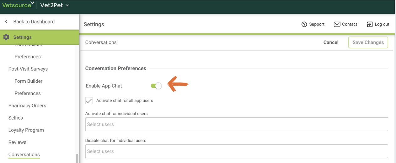 - Activate chat for individual users: Only individuals selected will be able to access chat in their app.